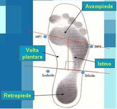 I tre settori funzionali dal punto di vista didattico e anatomico si possono denominare: retropiede, mesopiede (volta plantare e istmo) e avampiede.